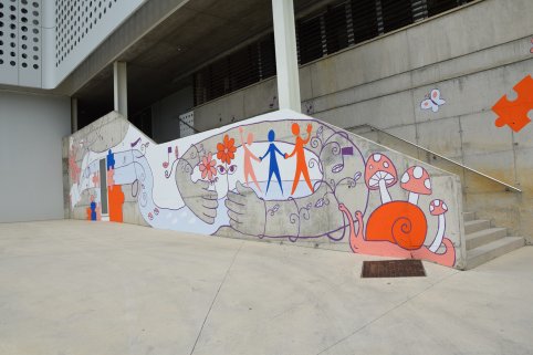 Gràcies a totes les persones usuàries, professionals, alumnes i equips assistencials que han fet possible aquest mural col·lectiu. La implicació de tots ha donat forma a una obra que és expressió, transformació i comunitat.