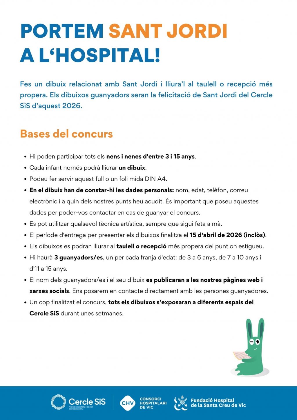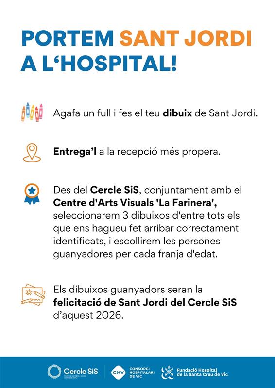 Un any més, la felicitació de Sant Jordi del Cercle SiS sortirà del concurs de dibuix Vadecor 'Portem Sant Jordi a l'Hospital' que impulsem durant el mes d'abril.